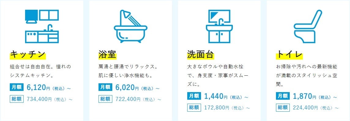 初期費用と分割手数料が0円で、支払回数が多くなっても支払総額は変わりません。見積には商品・工事・長期修理保証が全て含まれております。