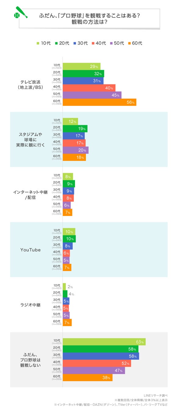 LINEリサーチ、全国の10~60代の男女を対象にプロ野球観戦に関する調査を実施