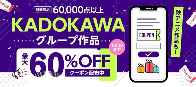 KADOKAWAグループ作品60,000点以上に使える!最大60%OFFクーポン配布