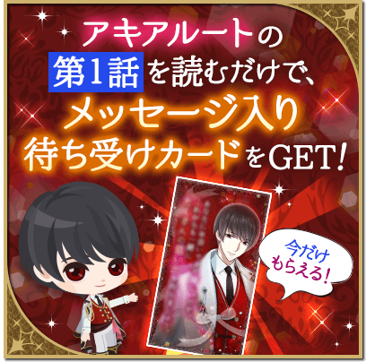 今なら期間中にアキアルート【第1章第1話5節】を読了すると、メッセージ入り待ち受けカードをプレゼント!