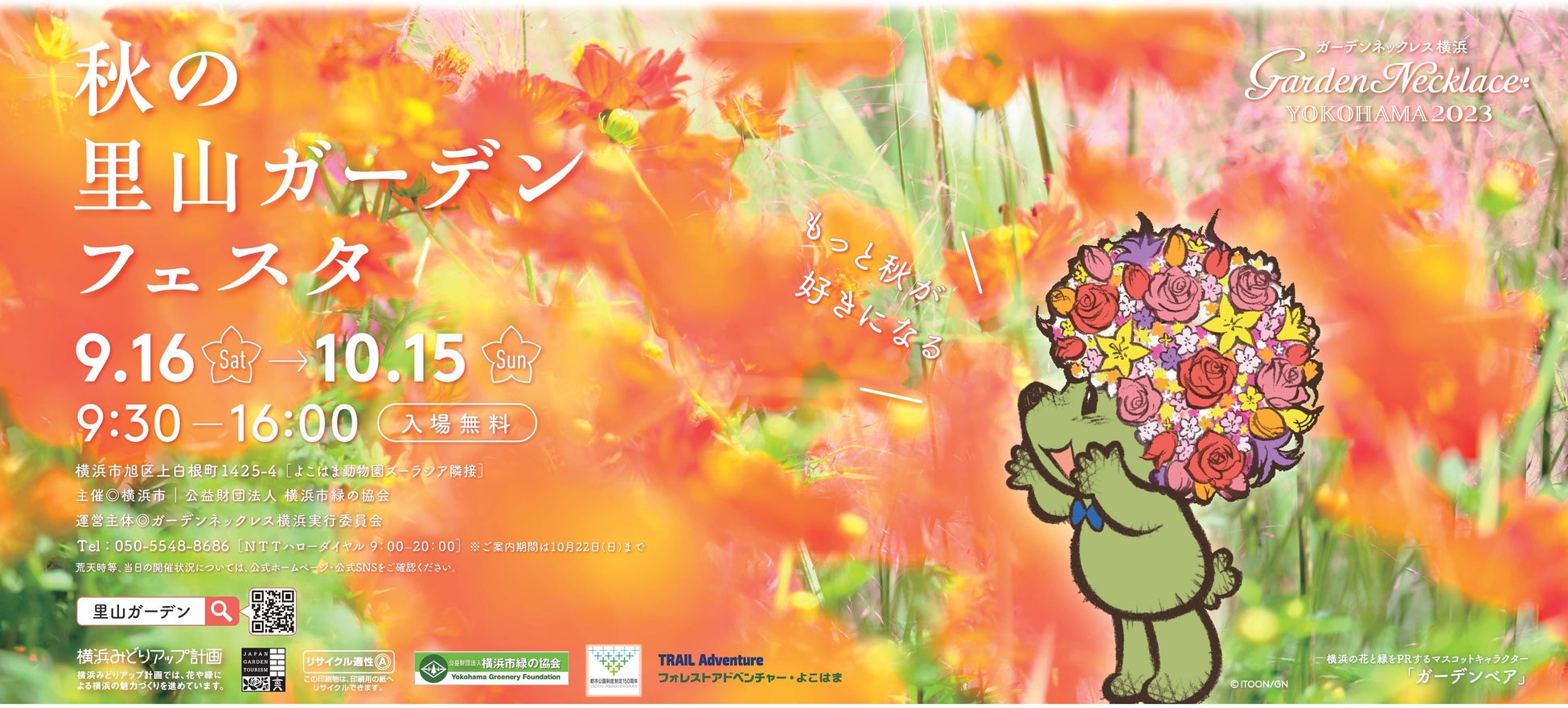 また、横浜の花と緑をPRするアンバサダー三上真史さんによる子どもや親子が楽しめるイベント、正面入り口広場では横浜農業協同組合のご協力による花苗等の販売なども開催します。心地良い秋の風が楽しめる里山ガーデンへぜひお越しください。