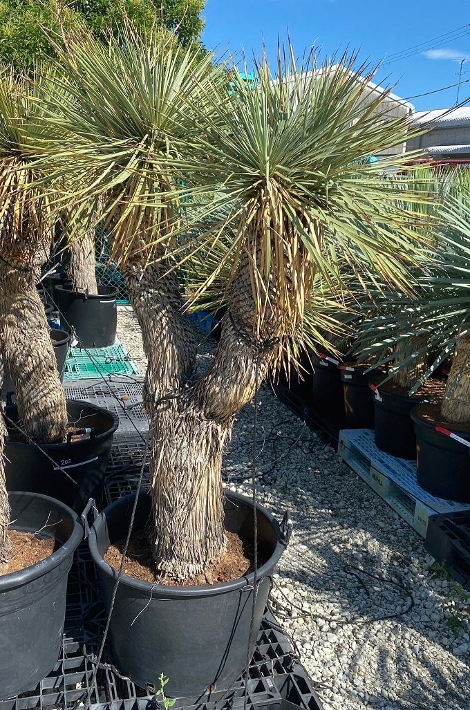 鋭く尖った葉と荒々しい幹がとても魅力的な植物。枯死した葉が幹を覆い、独特の幹肌 を作りあげます。非常に耐寒性に優れ、マイナス10℃まで耐えることができ、極端な乾燥にも 耐えるため、あまり手をかけなくても育つ貴重な植物です。