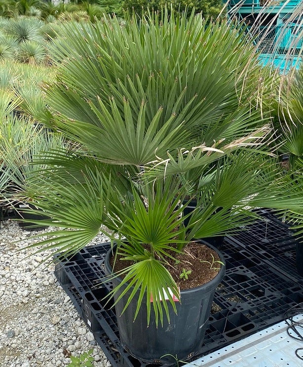 イタリア南部シチリア島のエトナ火山にのみ自生するチャボトウジュロの矮性品種。グリーンの葉が密集している、 個性的で希少性の高いヤシです。暑さ・寒さにも強く、また低木なので大きくなっても2〜3mと小振りなため扱いやすい植物です。寒さには強く、戸外で越冬可能。雨の少ない地中海 で育つため、乾燥にも強い植物です。