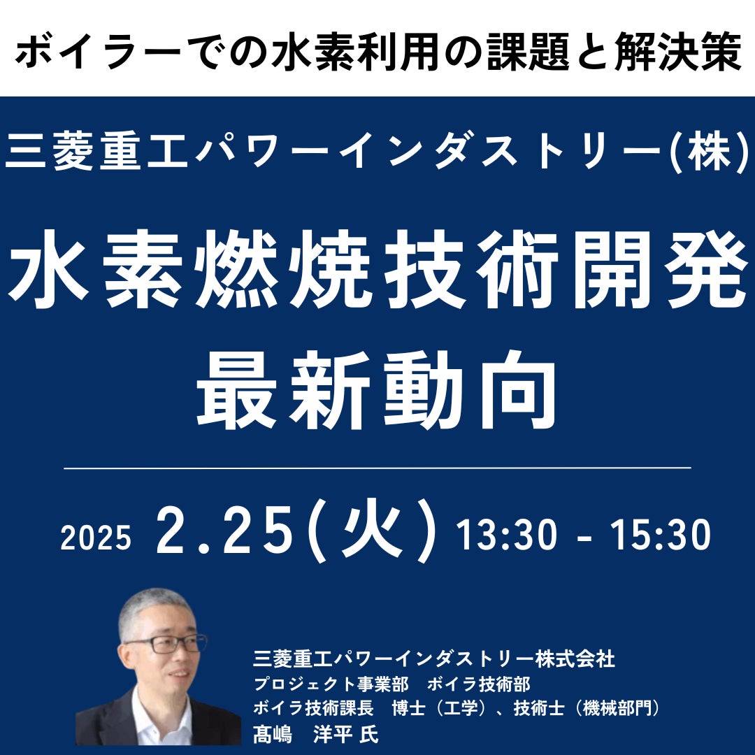 【JPIセミナー】三菱重工パワーインダストリー(株)「ボイラーにおける水素利用の課題と水素燃焼技術開発最新動向」2月25日(火)開催