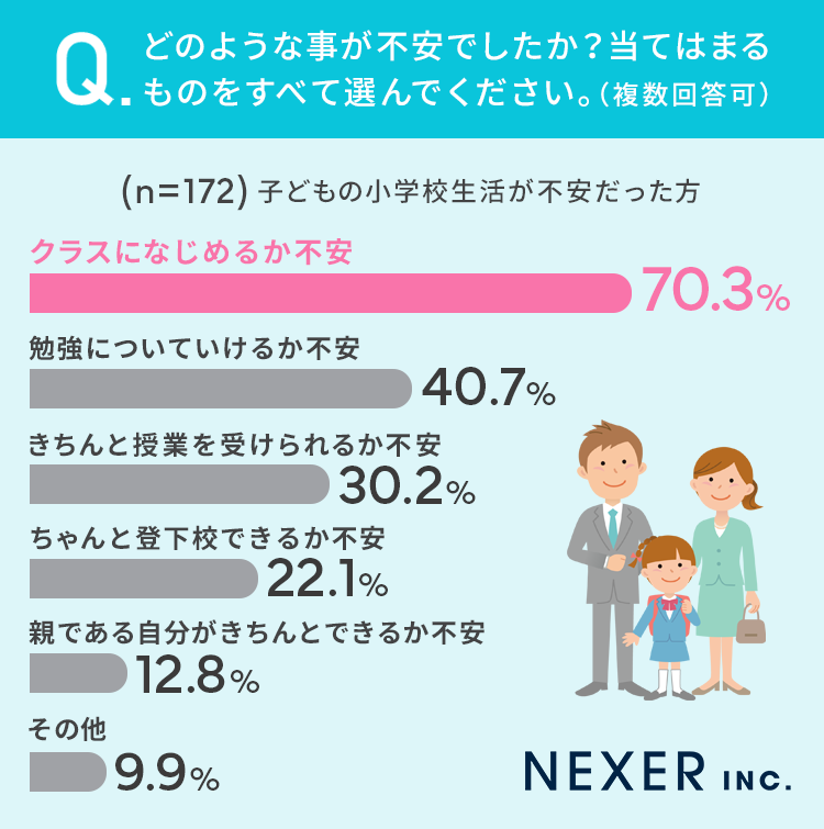 もっとも多かったのが70.3%で「子どもがクラスになじめるか不安だった」という回答でした。
