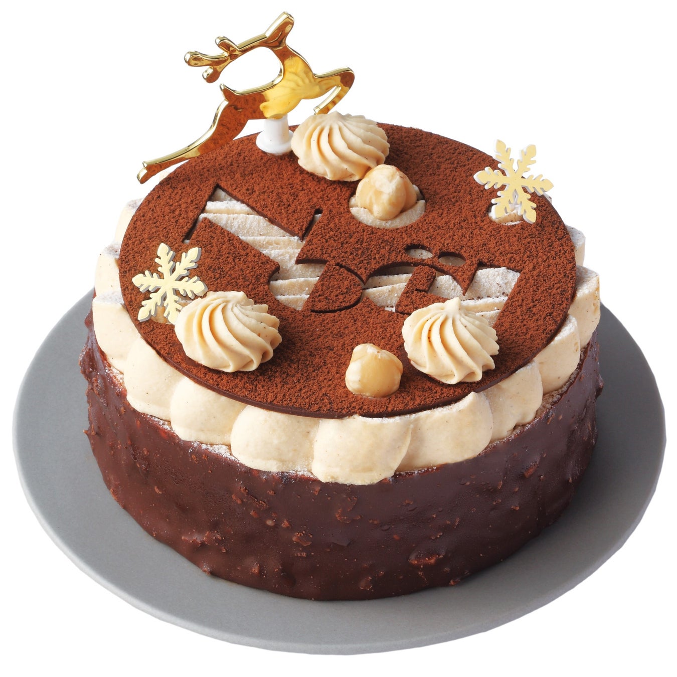 ピスタチオクリームにチョコレートケーキとフランボワーズムースを重ねたクリスマスツリー型のケーキ。チョコレートやアラザン、クッキーなどオーナメントを添えて、大切な人と一緒にデコレーションをお楽しみいただけます。