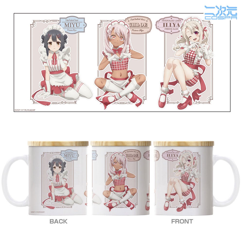 ウエイトレス服のイリヤ&美遊&クロエ フタ付きフルカラーマグカップ