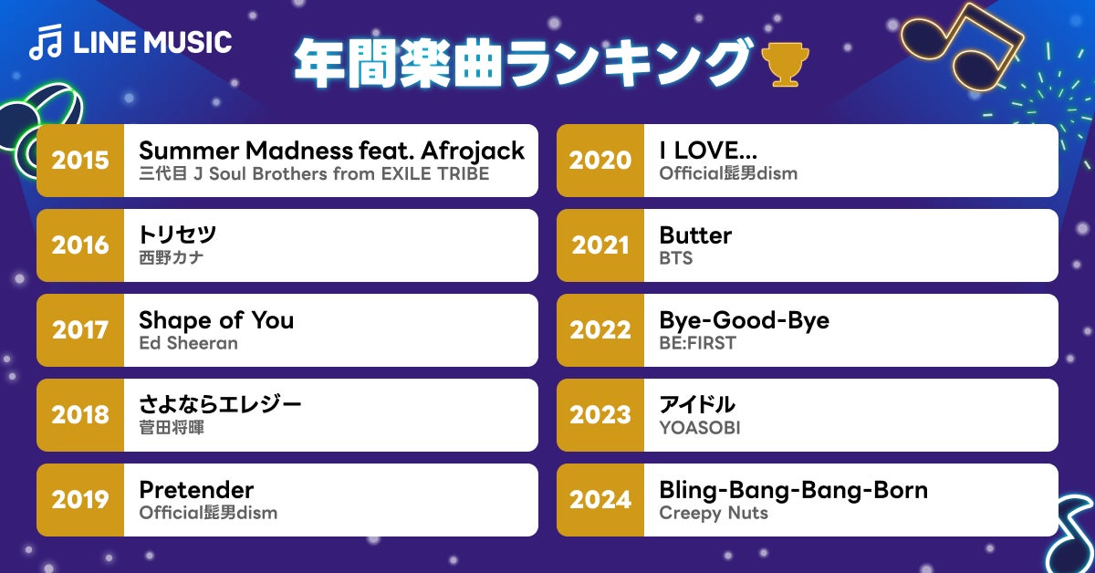 <1>LINE MUSIC10周年「年間楽曲ランキング」