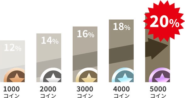 毎月の購入金額に応じて、翌月の電子書籍購入時のポイント還元率が最大20%アップ!