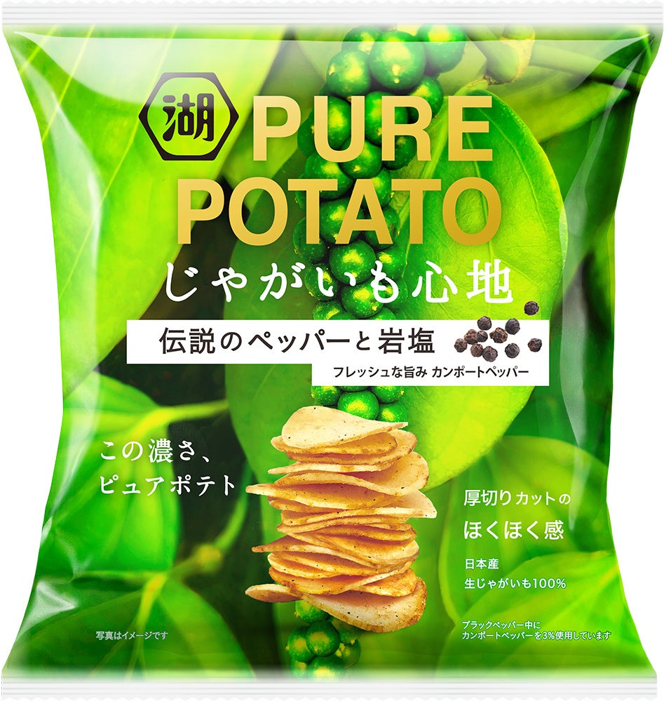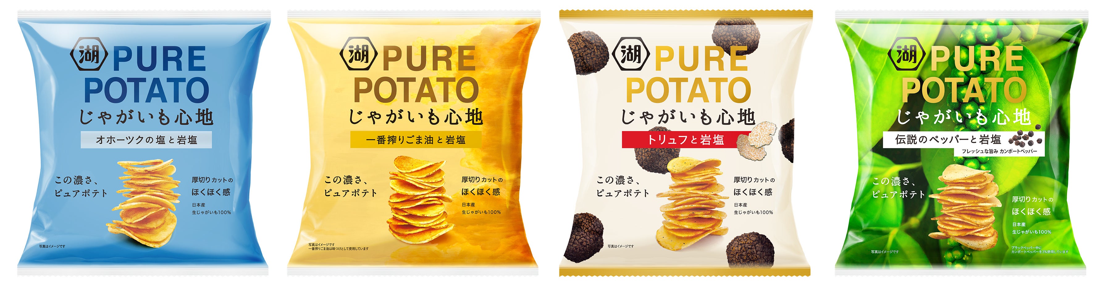 株式会社湖池屋(本社:板橋区/社長:佐藤章)は、じゃがいもの濃い味わいと特有のホクホク感がご好評をいただいている「PURE POTATO じゃがいも心地」ブランドをリニューアルし、新しくなった「オホーツクの塩と岩塩」「一番搾りごま油と岩塩」「トリュフと岩塩」「伝説のペッパーと岩塩」を、2022年9月19日(月)より全国・全チャネルにて発売します。