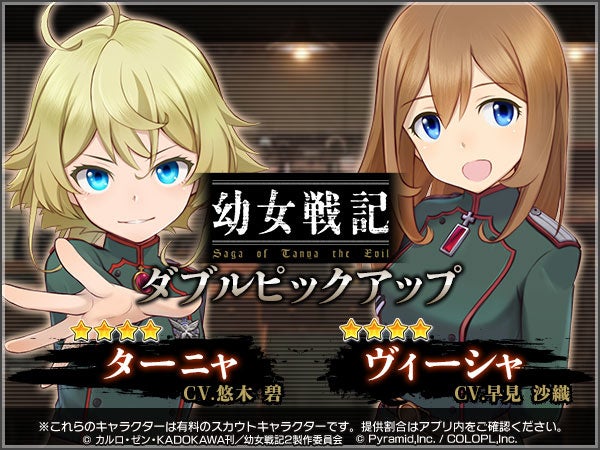 ゲーム内では『ターニャ(CV:悠木 碧)』『ヴィーシャ(CV:早見 沙織)』の〈ダブルピックアップ〉スカウトが開催中のほか、公式Twitterでは抽選で豪華グッズが当たるキャンペーンも開催中です。