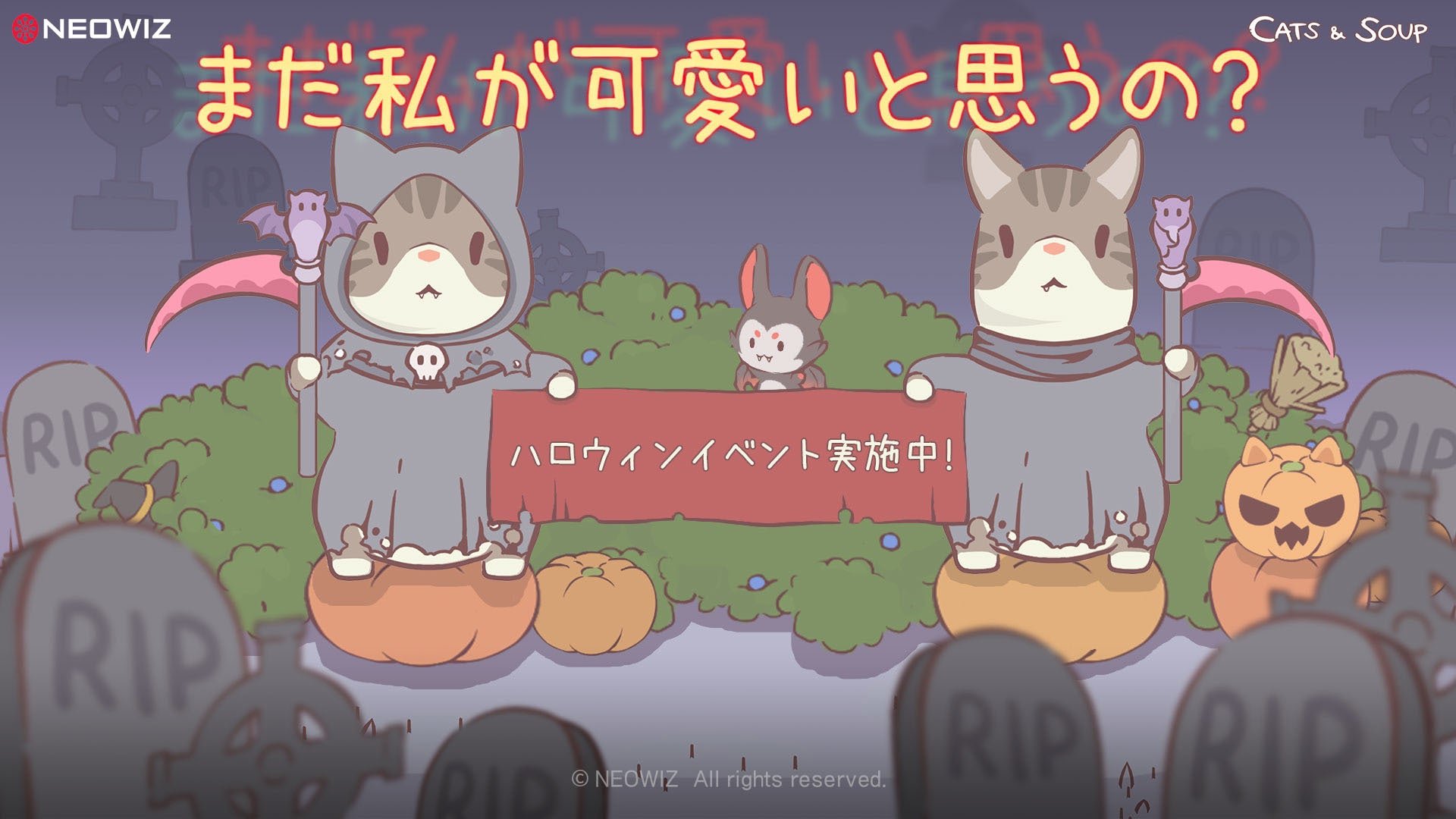 株式会社NEOWIZ(本社:韓国 京畿道城南市、共同代表:金 承徹(キム・スンチョル)/裵 泰根(ベ・テグン)がサービスし、ハイディア(代表キム·ドンギュ)が開発している癒し系放置型ゲーム『猫とスープ(Cats&Soup)』ではハロウィンシーズンを記念するイベントを10月21日(金)より開始いたしました。