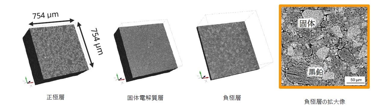 全固体電池を非破壊で高精細に3次元可視化画像解析を用いて定量化することが可能。