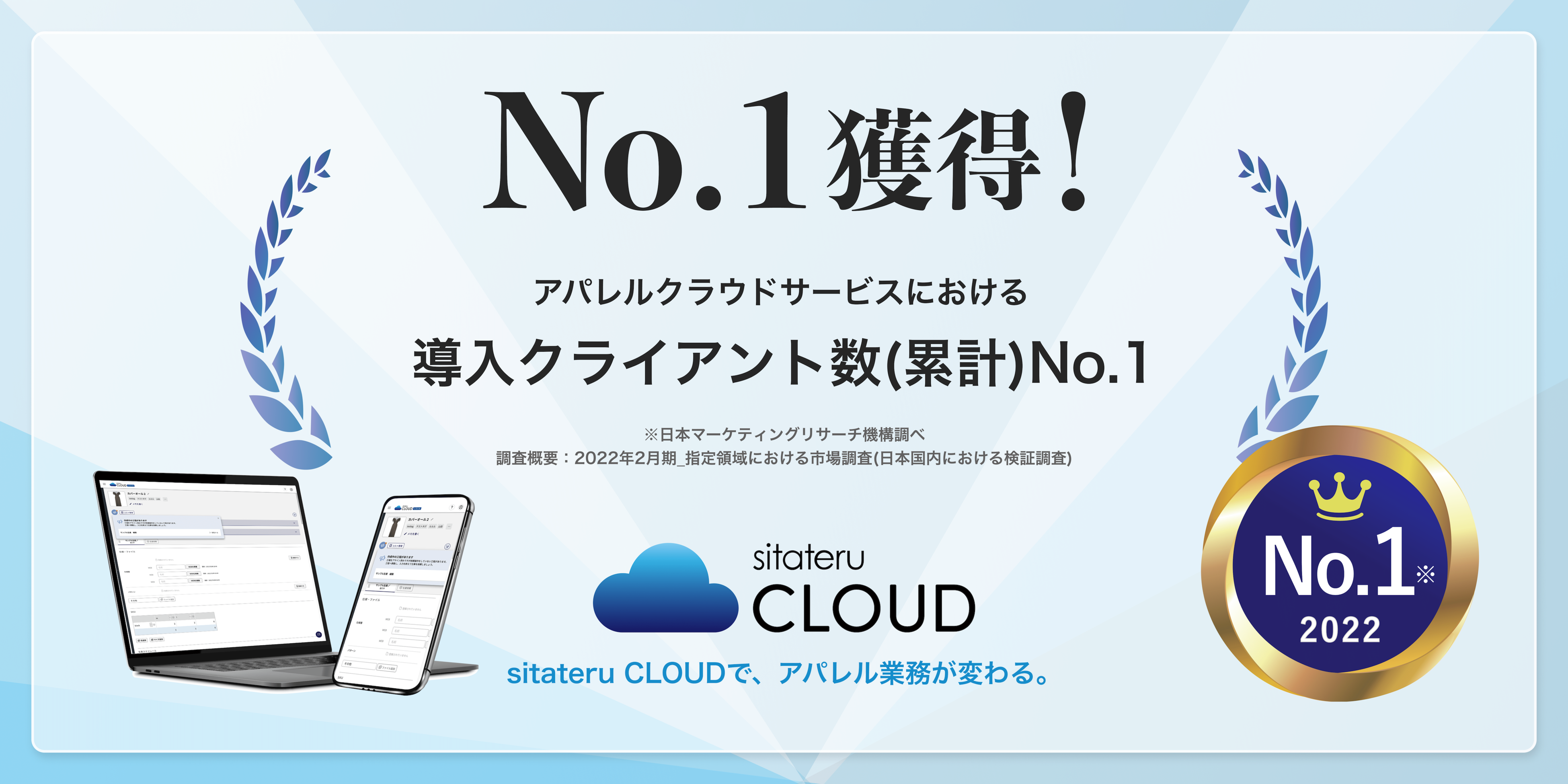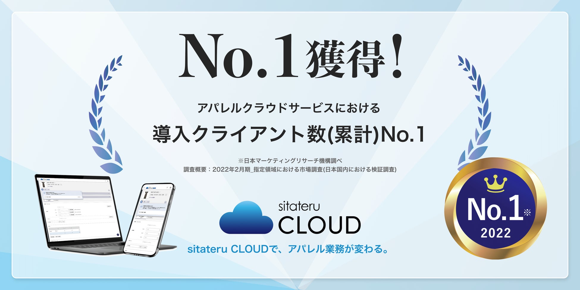 衣服・ライフスタイル産業の生産性を高めるクラウドサービス「sitateru CLOUD」が、国内アパレルクラウドサービスにおける調査で『導入クライアント数(累計)No.1』を獲得しました!