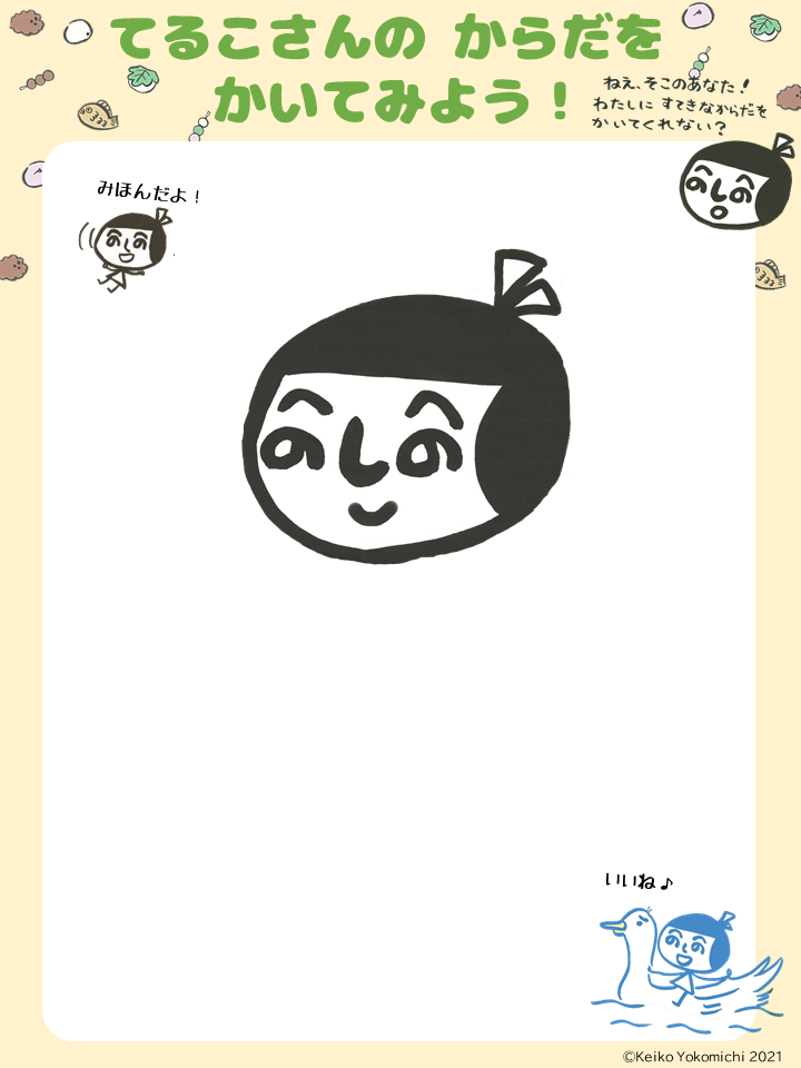 イラストを完成させて、Twitter・Instagramからご応募ください。さぁみんなで「てるこさんのからだ」をかいてみよう!