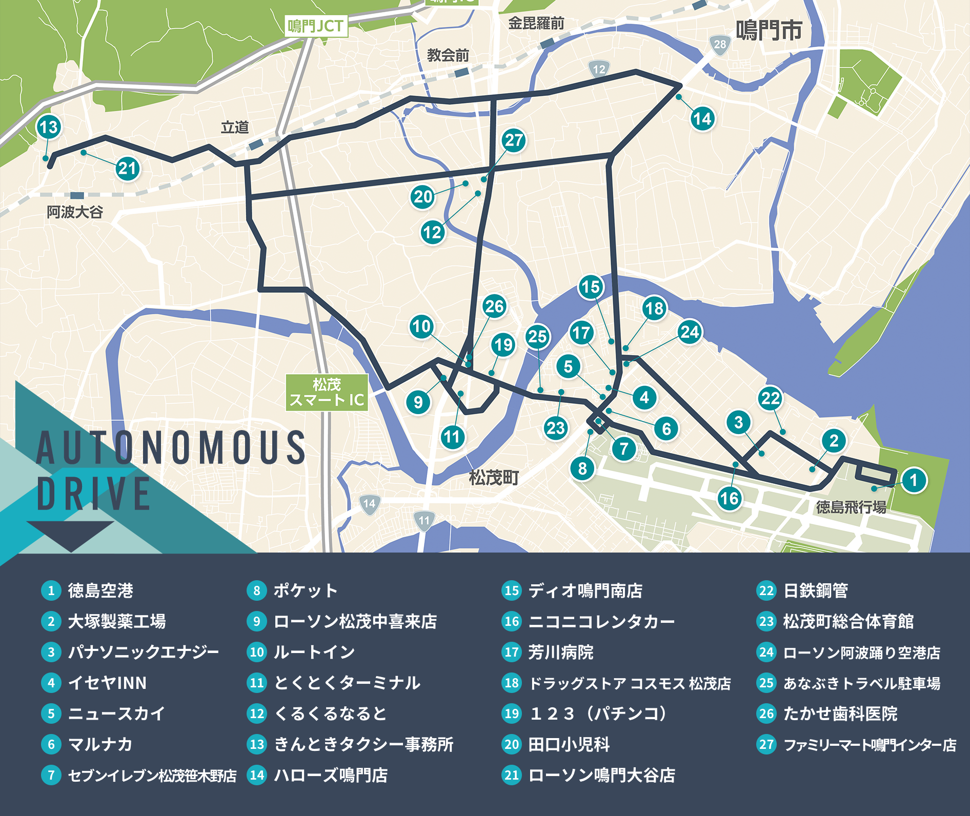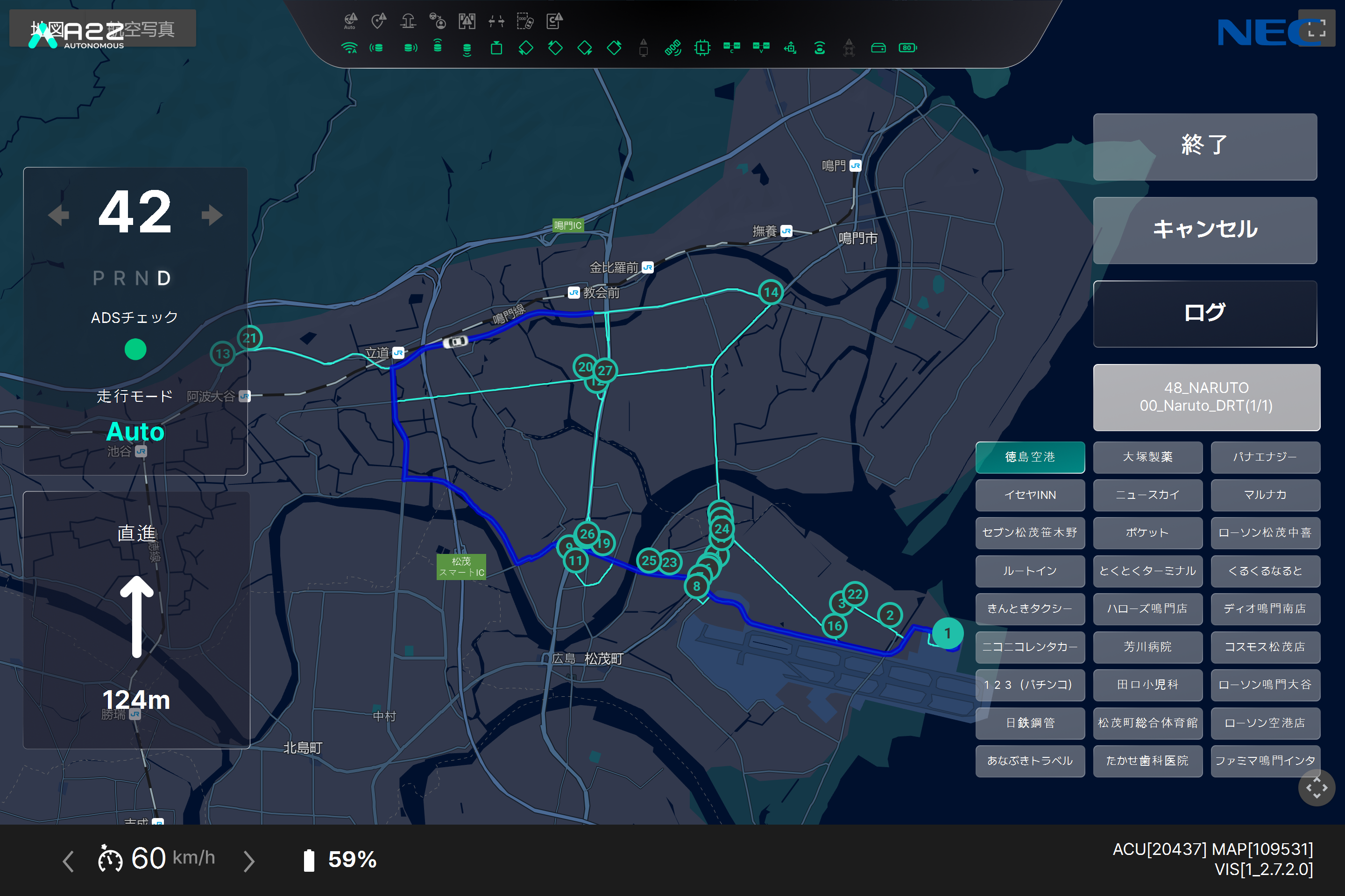 徳島県、NEC、電脳交通、きんときタクシーによる徳島県鳴門市等における自動運転タクシーの実証運行を開始