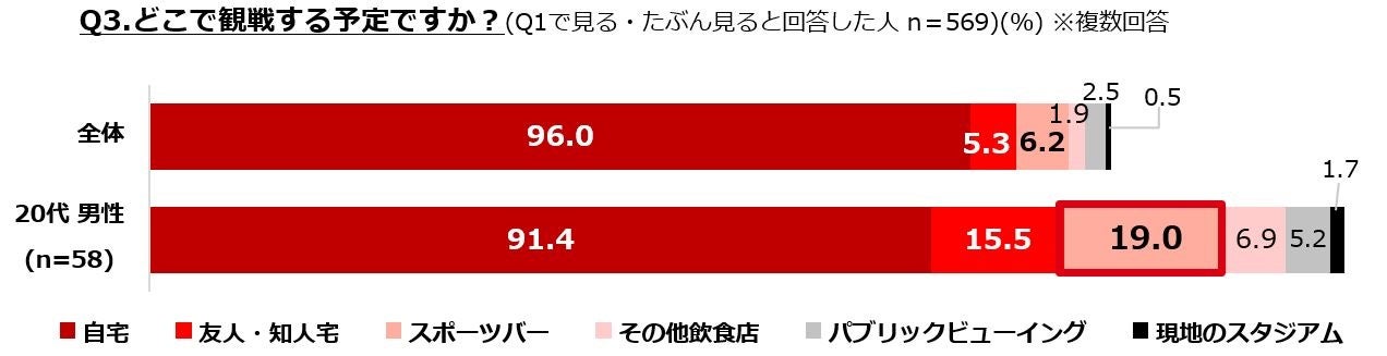 ・観戦する場所は96%が自宅。20代男性では「スポーツバー」が約2割。