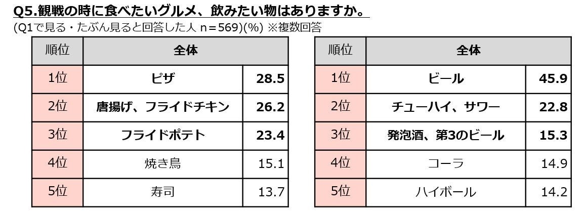 スポーツ観戦で食べたいグルメは「ピザ」、飲みたい物は「ビール」が1位!