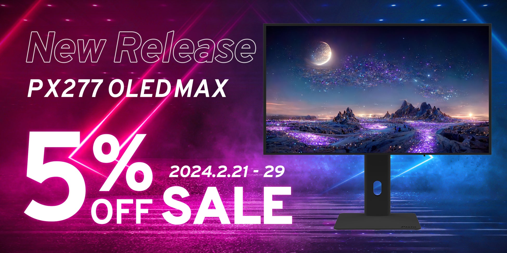 2024年2月21日(水)0:00~2月29日(木)23:59まで、「PX277 OLED MAX」の5%OFFセールをPixio全店で開催します。この機会にぜひPixio製品をご体験ください。