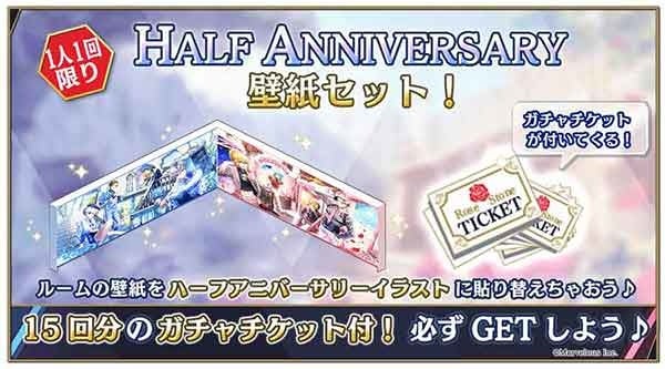 ガチャチケットとハーフアニバーサリー仕様の壁紙のセット
