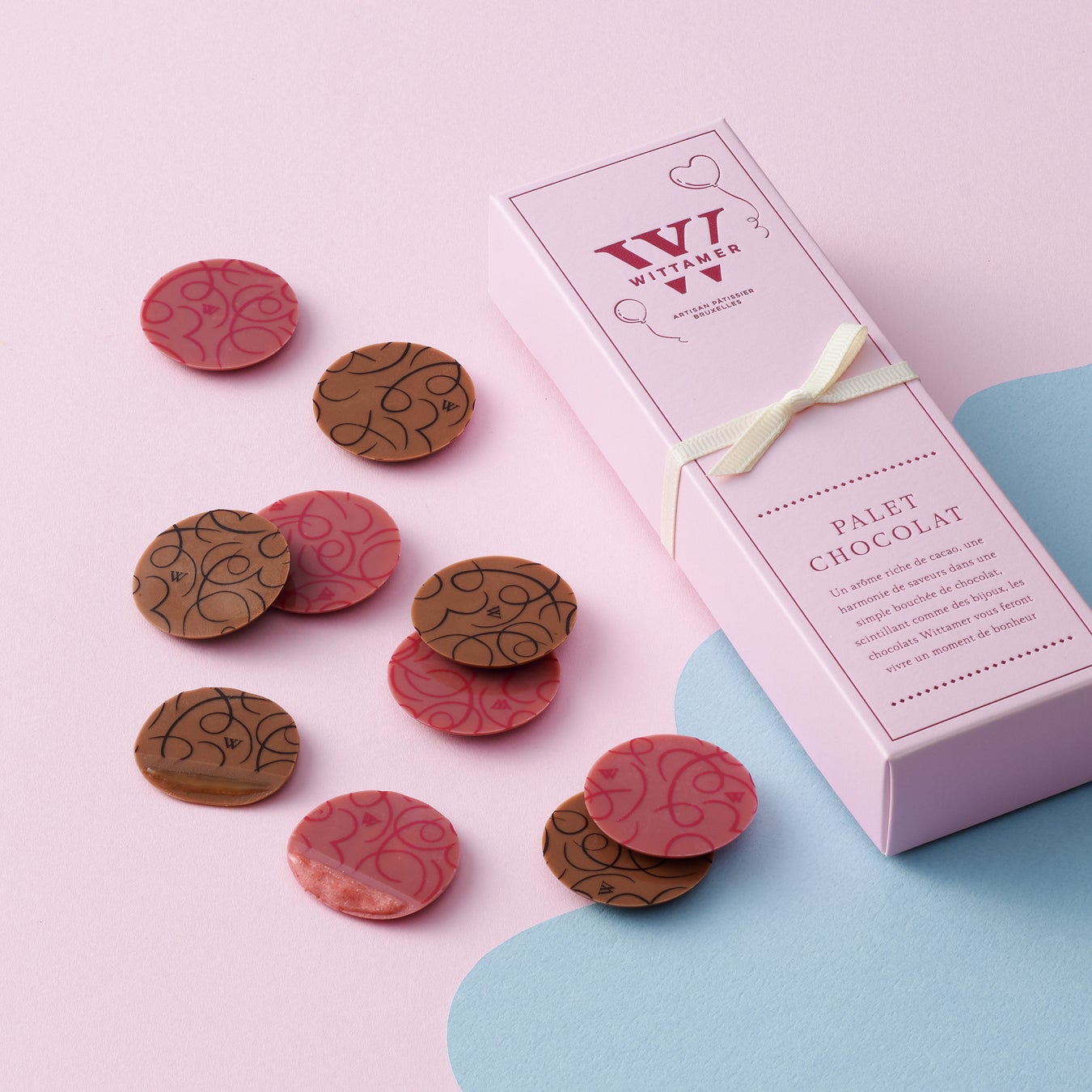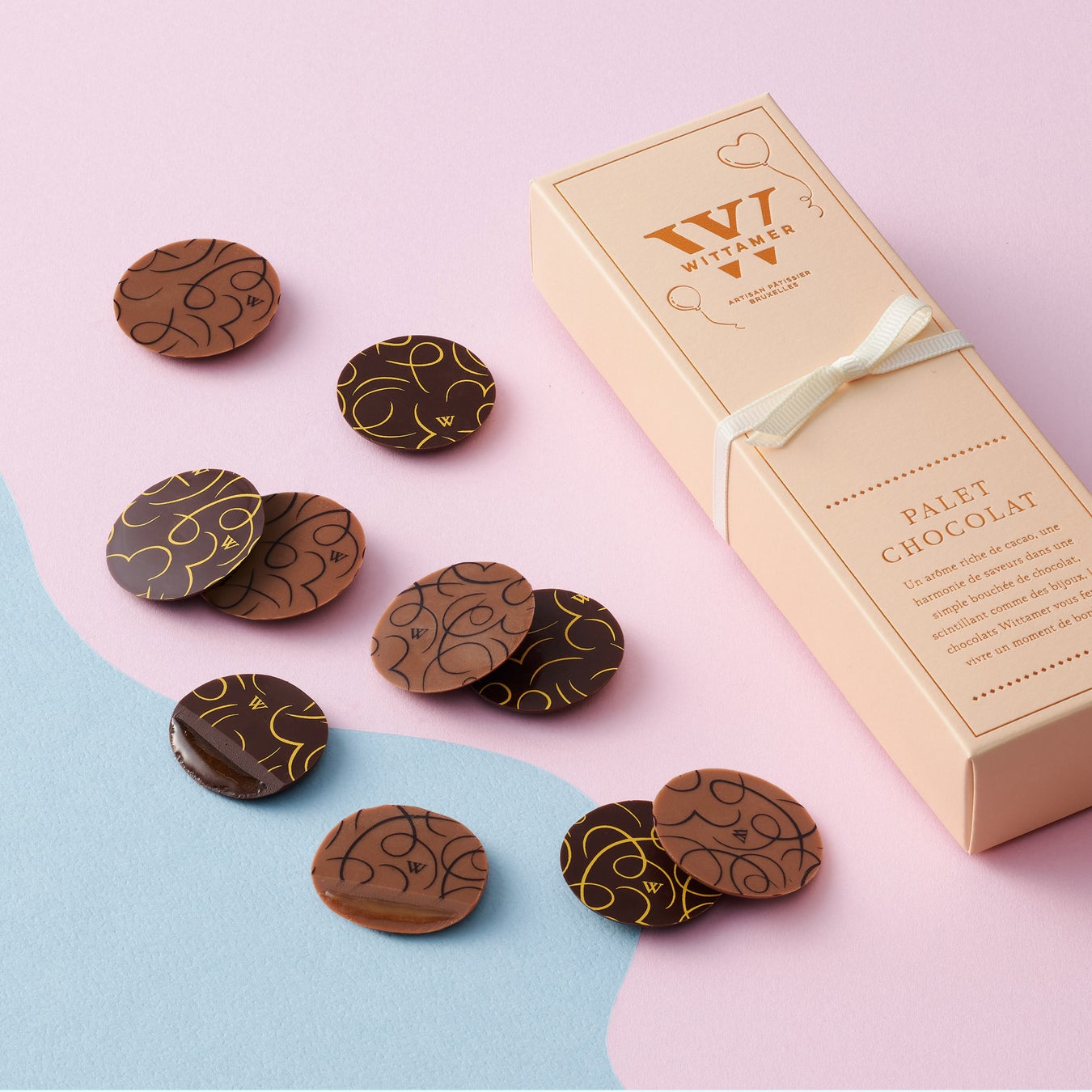薄いチョコレートの中にフィリングをとじ込めたパレショコラ。
