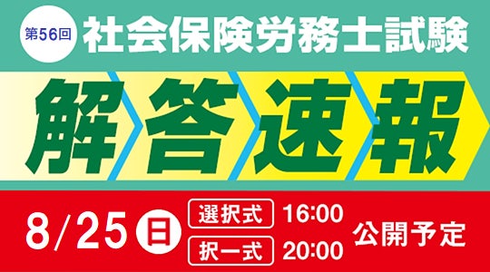 【2024年度 社会保険労務士試験】8/25(⽇)試験当⽇に、『解答速報』公開&『本試験講評』をLIVE配信!さらに、『解答分析会』を8/31(土)・9/1(日)に実施!