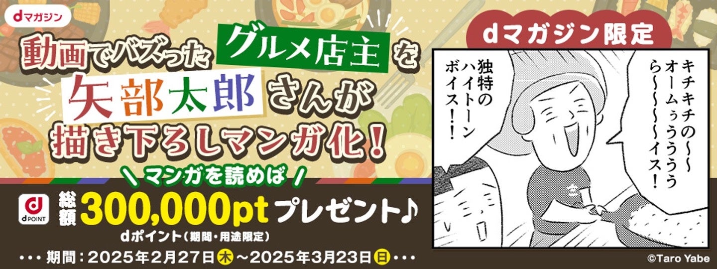 【人気YouTuberとコラボ⁉】矢部太郎さんが「動画でバズった名物グルメ店主」を訪ねた短期連載マンガをdマガジン限定で公開!