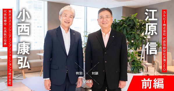 TGESとカルビーの両社長が対談。清原工業団地スマエネ事業の意義や脱炭素社会に向けて企業が手を取り合う意味、今後の展望などを語りました。