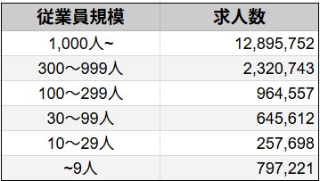 一方、従業員10人未満の企業でも約80万件の求人があり、スタートアップや小規模事業者の採用需要も一定数存在することが確認されました。