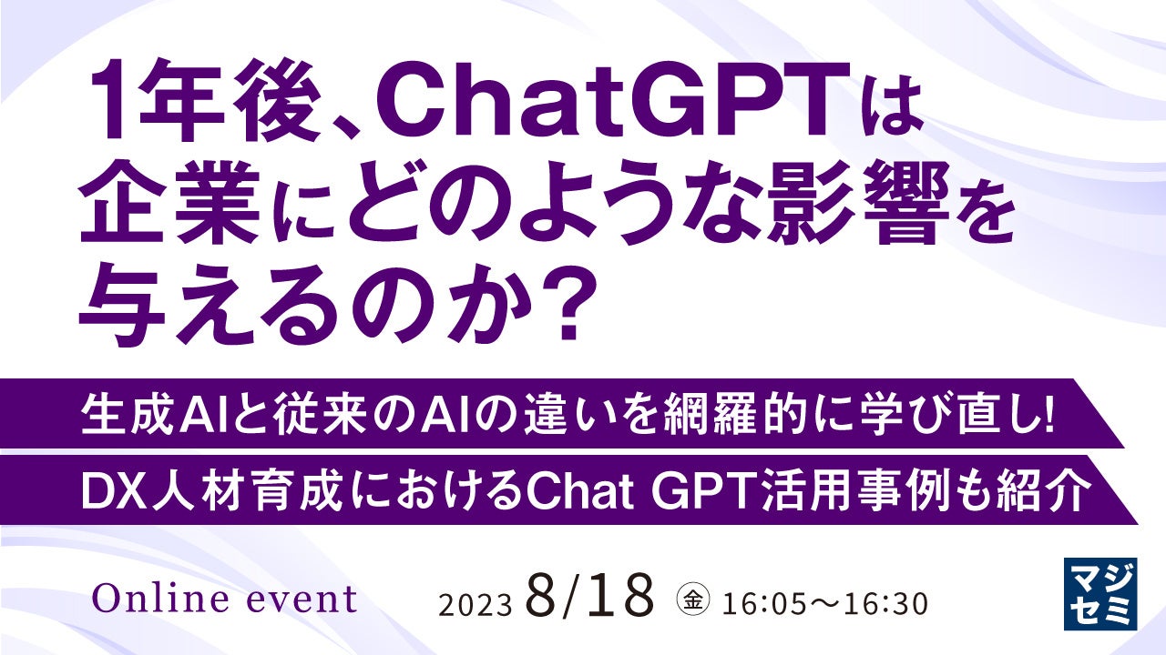 『1年後、ChatGPTは企業にどのような影響を与えるのか? 生成AIと従来のAIの違いを網羅的に学び直し!DX人材育成におけるChat GPT活用事例も紹介』というテーマのウェビナーを開催