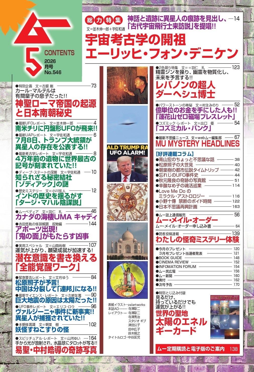 ムー的地球の歩き方/南山宏のちょっと不思議な話/松原照子の大世見/朝里樹の都市伝説タイムトリップ/辛酸なめ子の魂活巡業/Love Me Doのミラクル・アストロロジー/忘れじのUFO事件史……ほか