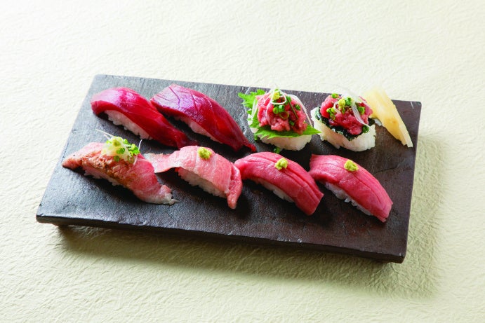 津軽海峡で水揚げされた本まぐろの赤身や炙りとろなどを一皿で堪能!