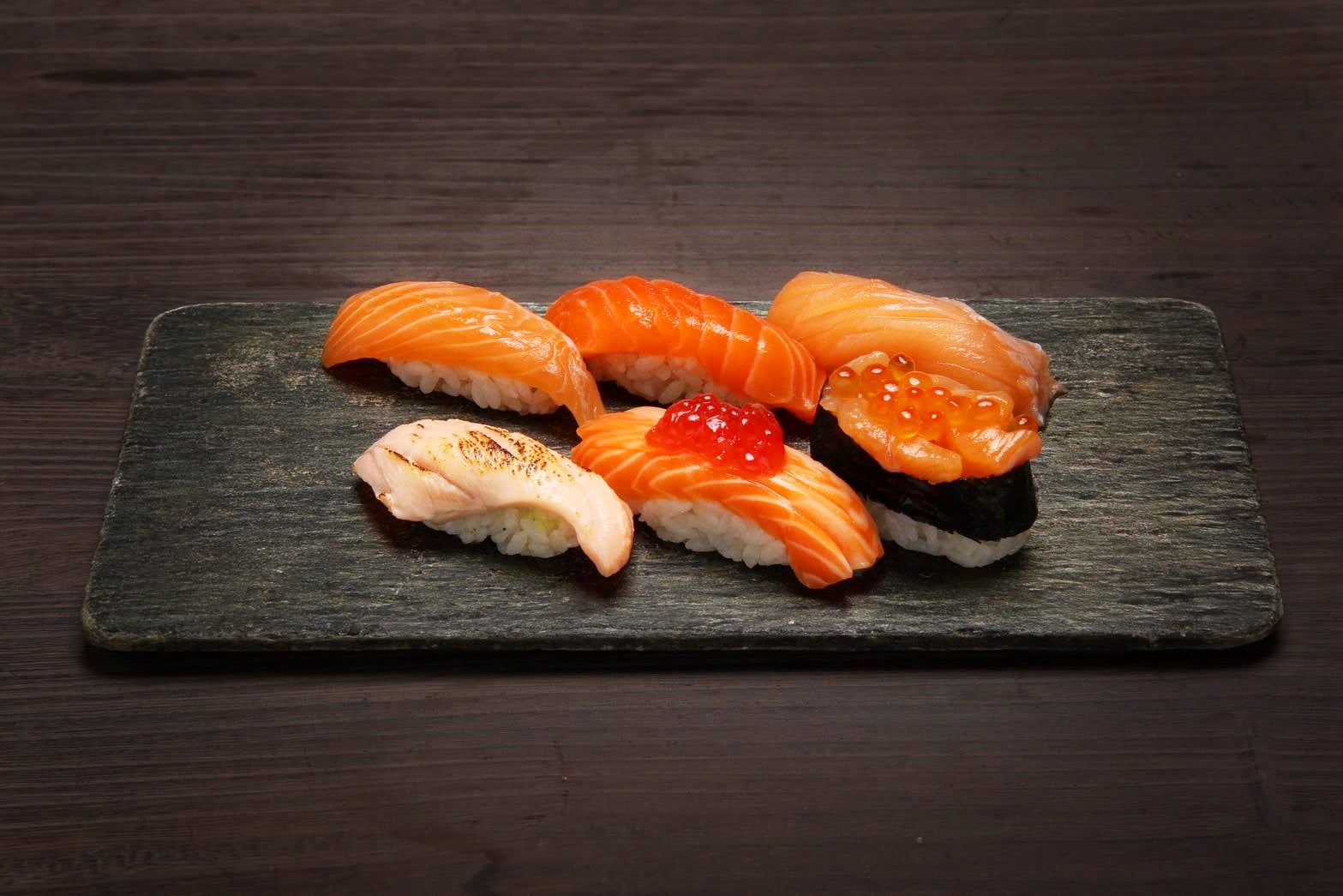 [鮨処 竜敏](札幌市中央区)蝦夷サーモン味比べ(1皿・6貫)3,520 円 〈各日25食限り〉