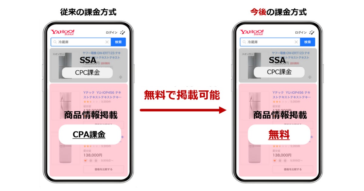 LINEヤフー株式会社(以下、LINEヤフー)は、商品を販売する事業者向けに、これまで成果報酬型(CPA課金)で提供していた「Yahoo! JAPAN商品情報掲載(以下、商品情報掲載)」を無料化しました。
