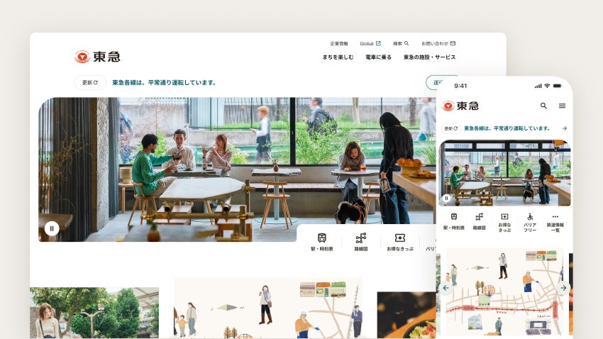 「東急・東急電鉄公式サイト」を通じ、東急㈱グループ全体の顧客接点を拡充し、横断的な情報提供を実現します。今後も引き続き、デジタルの力を最大最適に活用して、お客さま一人ひとりのリアルな暮らしや人生を育むサービスを展開し、お客さまや東急㈱グループの未来を創造するべく、取り組んでいきます。
