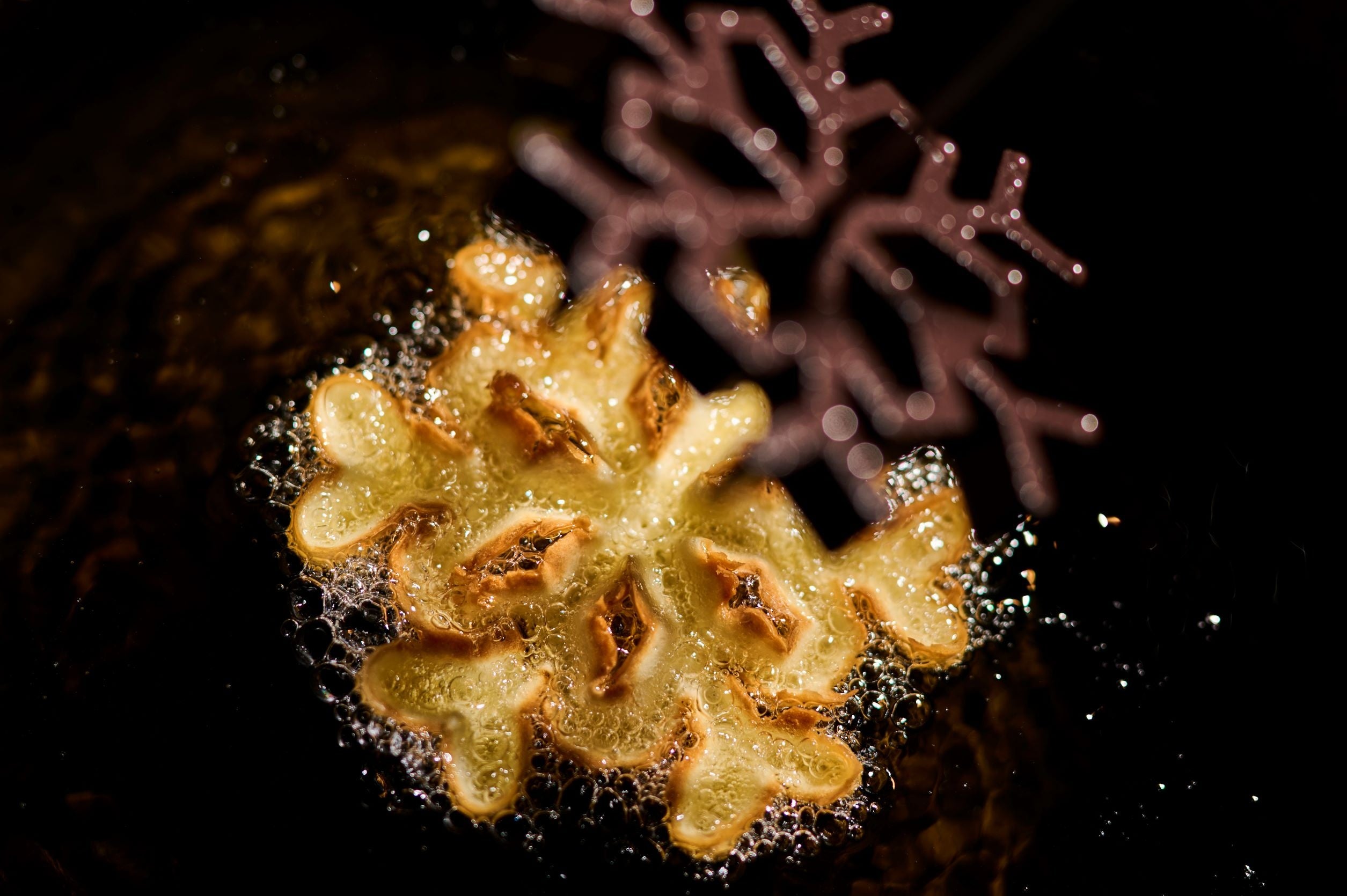 特別な型を使って油で揚げる素朴なお菓子。