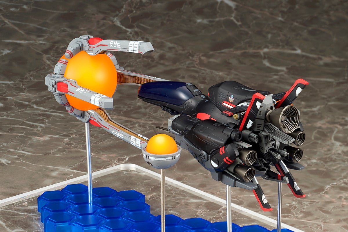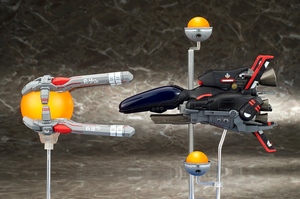 名作シューティングゲーム「R-TYPE」シリーズから、異層次元戦闘機 R-9A ARROW HEAD “アロー・ヘッド”にイベント限定カラー版が登場! 黒色の特殊塗料により回避率がアップした、スペシャルバージョンのモデル化です。通常版と同様にスタンダードフォース、ラウンドビットを備え、台座の配置と支柱の差し替えにより、劇中での様々なレイアウトを再現可能。独特の形状のラウンドキャノピーは脱着可能で、複座式のコクピットをご覧いただけます。