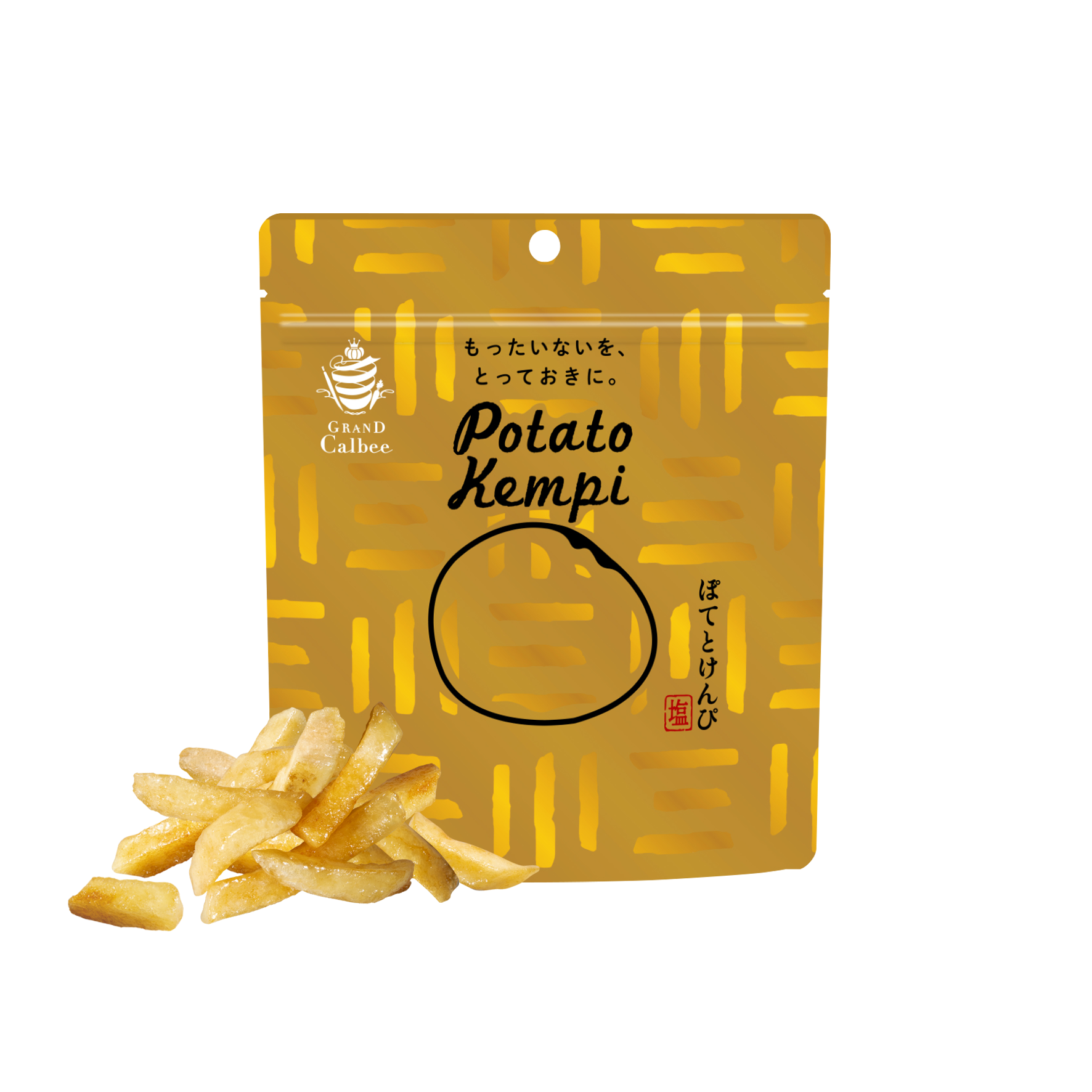 2022年9月にスティックの長さが足りないために規格外として商品化されていなかった「かけら」を商品化した「Jagabeeのかけら」を、公式オンラインショップ「カルビーマルシェ」で発売し、今も好評をいただいています。そんな「Jagabeeのかけら」にひと手間を加え、新しいじゃがいものおいしさが表現できないかと2年半以上試行錯誤を重ねました。その結果、蜜がけし「Jagabee」の食感・風味を活かしながら、従来の“芋けんぴ”とも異なる心地よい食感と上品な甘みが楽しめる、とっておきのおやつが完成。この度、様々な製法・形状の“ギフトにしたいポテトスナック”をお届けするグランカルビーにて『PotatoKempi』を発売する運びとなりました。大切な人へのプチギフトはもちろん、自分へのとっておきのおやつとして楽しみたい方に、おすすめしたい商品です。
