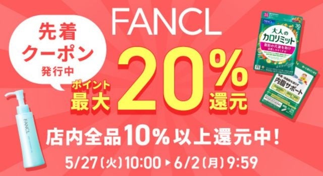 初夏に向けて「肌とカラダ」をアップデートする健康食品や化粧品などFANCLの商品が最大20%ポイント還元や割引クーポンでおトク