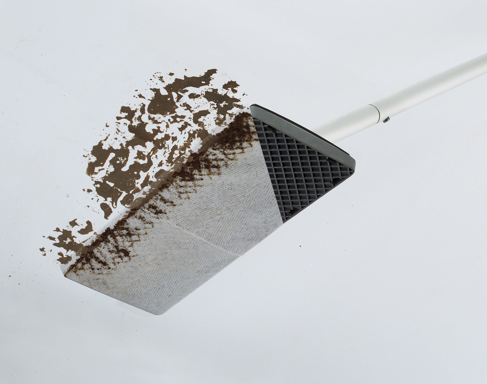 ヘッド部分には床への密着性を高めた素材と構造を取り入れており、かけた力が逃げることなく床に行き渡るため、従来のフローリングワイパーでは落としにくかった汚れも、スムーズに落とすことができます。