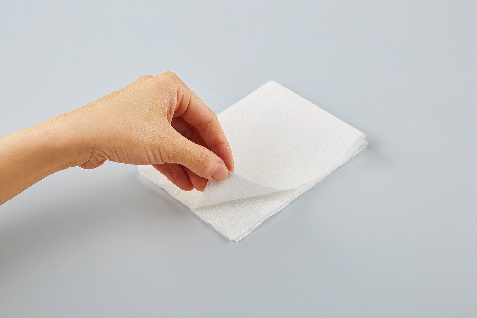 職場特有の靴跡汚れに対応したフローリングワイパー用ウェットシートです。エタノールで汚れを浮かせて界面活性剤で分解し、薬液ごと拭き取る設計なので、軽い力でスルッと落とすことができます。シートの表面はメッシュ模様になっていて、汚れをしっかりかき取ります。本体と組み合わせて使用することで、よりスムーズな床掃除をサポートします。