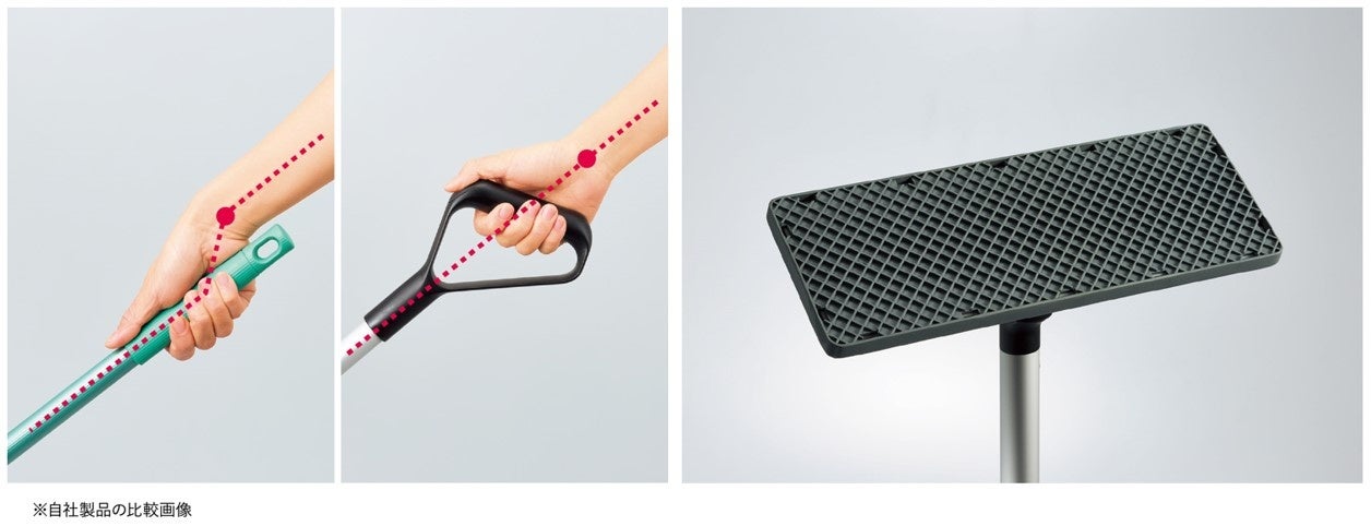 本製品は腰への負担軽減について、大学との共同研究により科学的根拠をもとに検証し、商品設計に反映しています。芝浦工業大学との共同研究では、身体への負担軽減を考慮した柄の長さについての評価実験を行いました。身長の高低に関わらず幅広いユーザーから、使いやすさや力の入れやすさの観点で最も高く支持された柄の長さを採用しています。また九州大学との共同研究*では、本製品使用時の身体への負担軽減因子を定量的に検証しました。モーションキャプチャで掃除動作の姿勢を解析した結果、使用時に上体が直立に近い姿勢を維持でき、腰を深く曲げずに力をかけられることが確認され、本製品が「腰を深く曲げず、ラクな姿勢で掃除しやすい構造」であり、結果として腰への負担軽減に繋がっていると考えております。