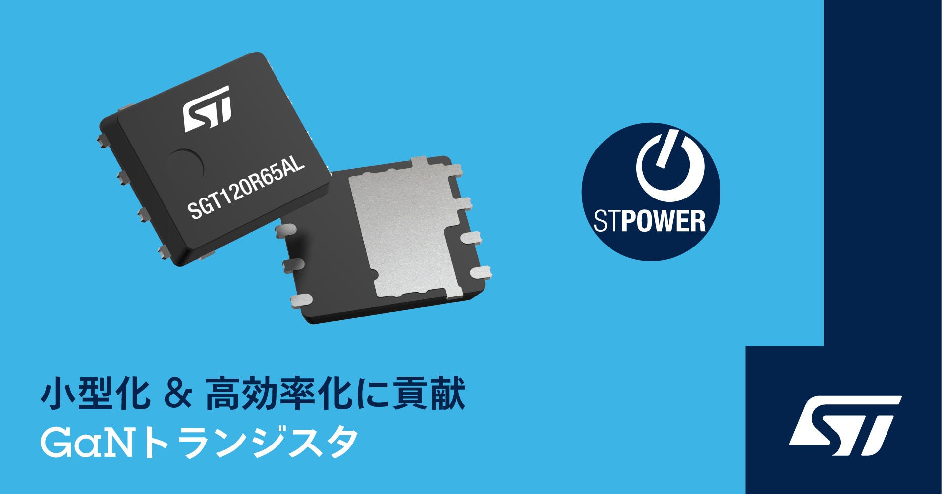 また、開発中の650V耐圧GaNトランジスタ「SGT120R65A2S」は、現在サンプル出荷中です。120mΩのRds(on)を備える同製品は、ワイヤ・ボンディングを使用しない先進的なラミネート型パッケージの2SPAK™で提供され、高電力・高周波数アプリケーションにおいて効率と信頼性の向上に貢献します。また、PowerFLAT 5x6 HVパッケージで提供される「SGT65R65AL」、および2SPAKで提供される「SGT65R65A2S」は、両製品共に65mΩのRds(on)を備えています。これらの製品は、2022年後半に量産を開始する予定です。