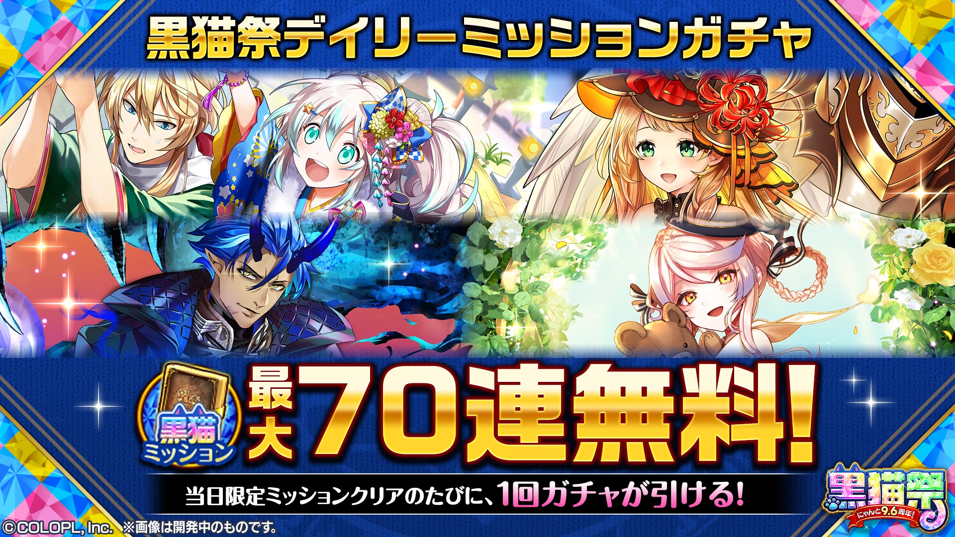 日頃から遊んでいただいている皆さまのおかげで、黒猫祭ました。これを記念してゲーム内では「黒猫祭キャンペーン」を順次実施いたします。詳細は特設サイト、もしくは公式Twitterをご覧ください。今後も続々と情報をお届けしますので、楽しみにお待ちください。
