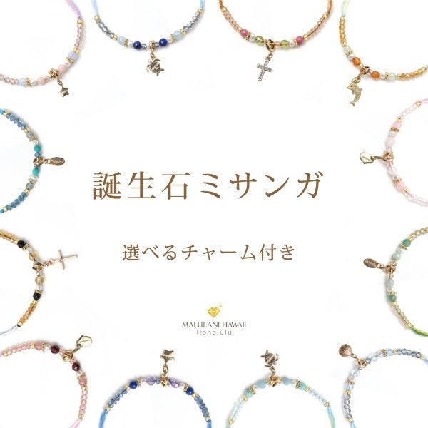 「厄災を避けて幸運を運ぶ」と伝えられる、誕生石を使用したミサンガやチャームは、ギフトにピッタリ。