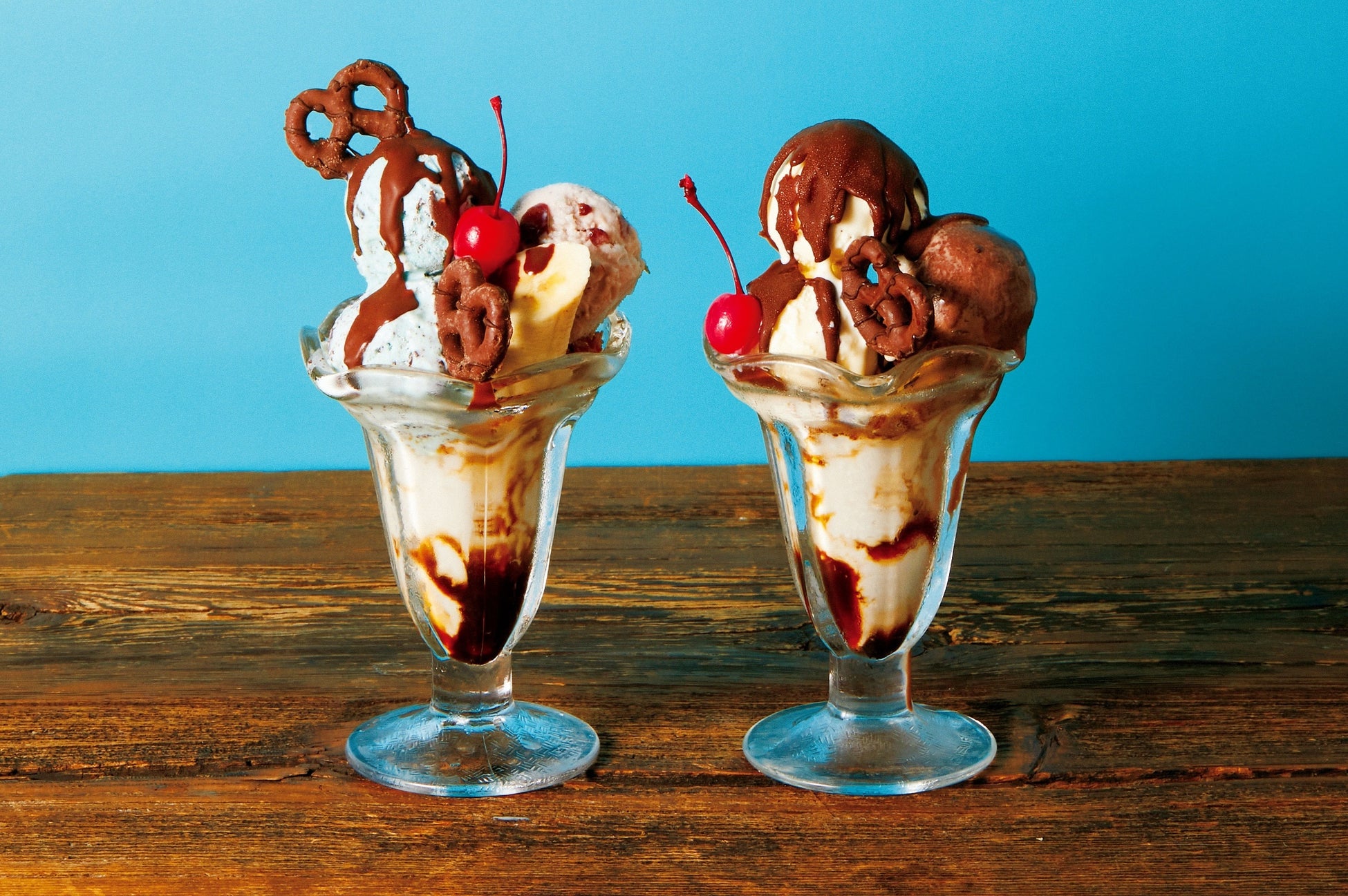 左:コーヒープリンサンデー チョコミント&チェリー 1,045円(税込)