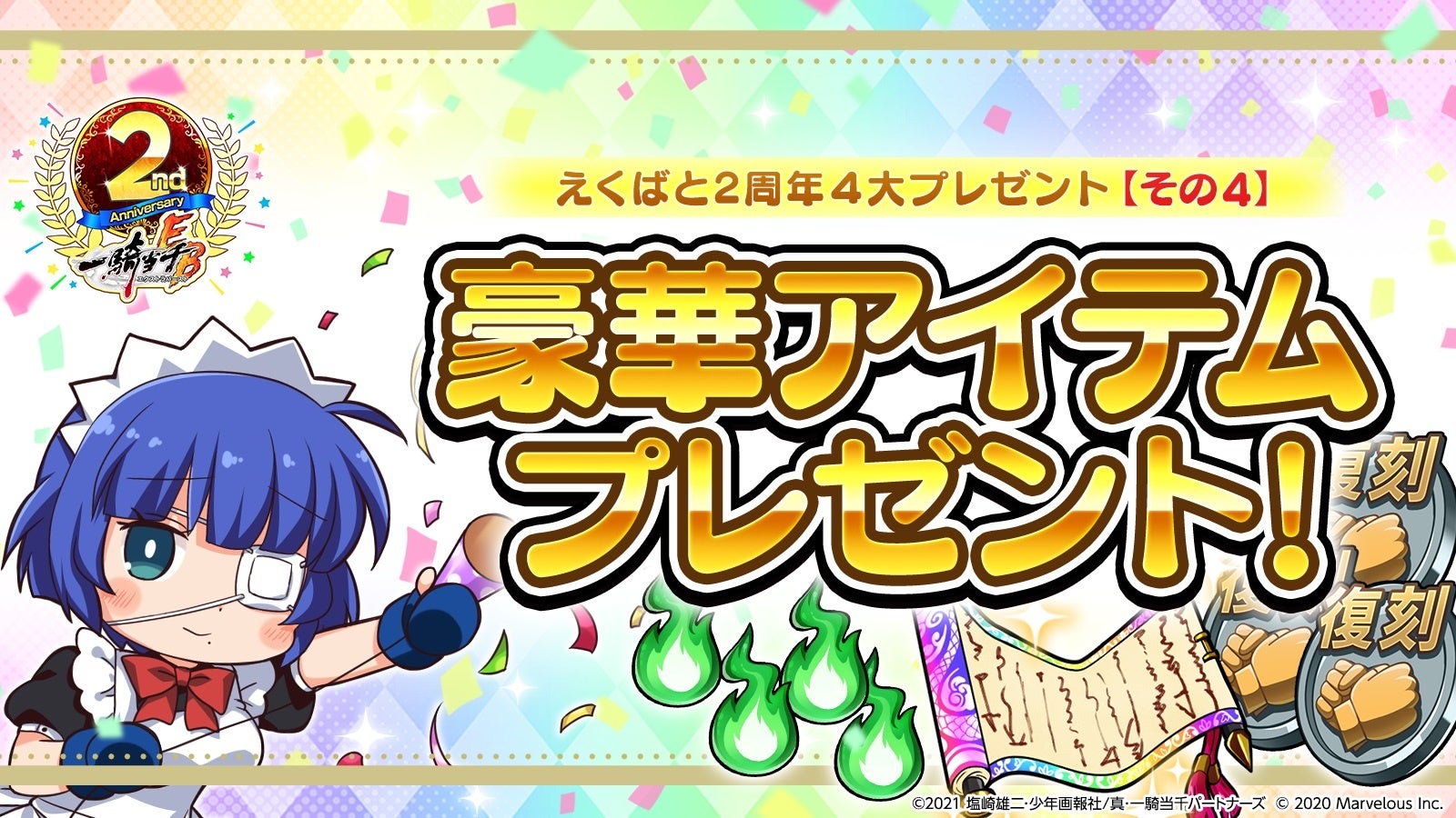 『一騎当千エクストラバースト』 超豪華プレゼントが盛りだくさんの2周年が開始!驚愕の「SSR10体確定ガチャチケット」の全員プレゼントや毎日10連!