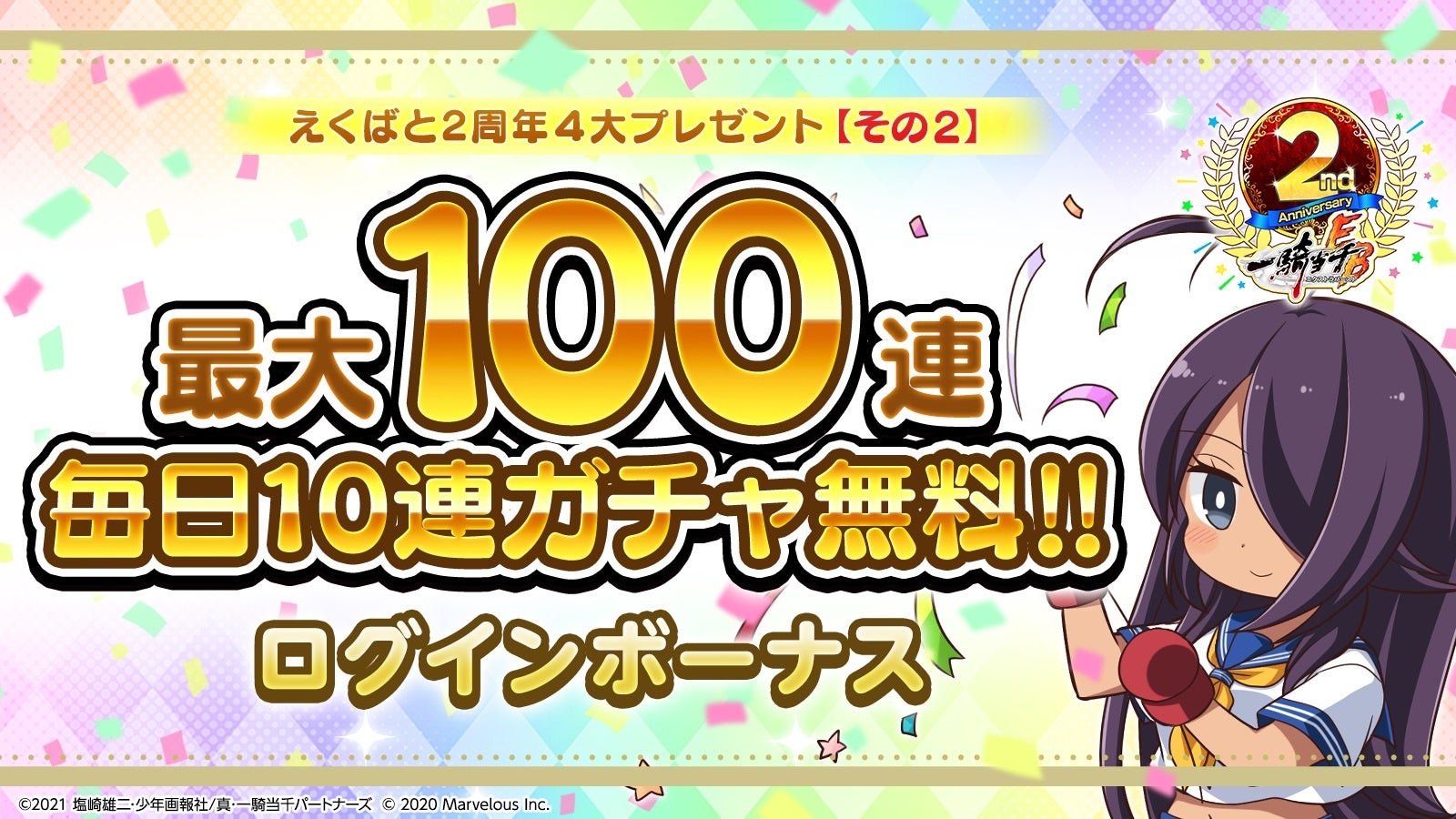 ◆4大プレゼント!②「最大100連!毎日10連ガチャ無料!」