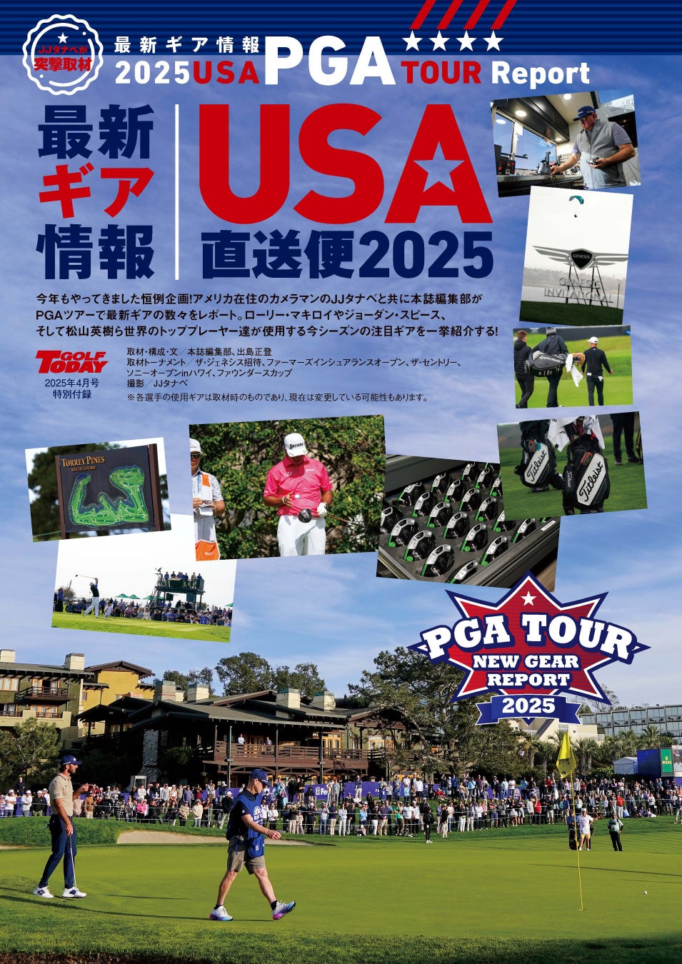 特別付録は「最新ギア情報USA直送便2025」、ツアーで流行中のギア特集。本場アメリカ、米ツアーへ突撃取材を敢行! トッププロが集まる世界最高峰の現場での「流行りモノ」は? 人気選手の使用クラブもわかります。