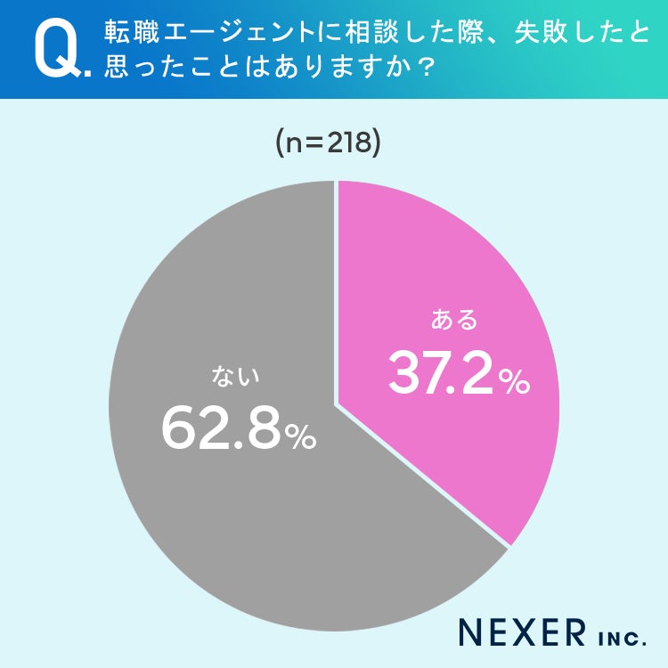 転職エージェントに相談したことのある37.2%の方が「転職エージェントへ相談して失敗した経験がある」と回答しています。